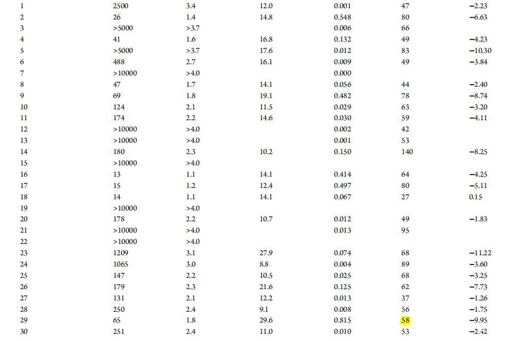 表2。測定了51種化合物的表面張力特性