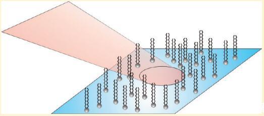 在過去的幾十年中,紅外-可見和頻發(fā)生(SFG)已被證明是研究水相表面活性劑的極好工具。1.?9在該技術(shù)中,紅外激光束與可見激光束在感興趣的界面處組合,并檢測兩者的和頻光束。在中心對稱介質(zhì)中,信號的產(chǎn)生通常是被禁止的,因此對界面上分子的存在非常敏感。如果紅外激光與界面分子的振動躍遷共振,則SFG強度增強,從而可以測量界面分子的振動光譜。SFG光譜的形狀包含有關(guān)表面活性劑的分子構(gòu)象和方向的信息。大多數(shù)研究都集中在高密度單分子膜上,盡管在低密度下有令人驚訝的觀察報告。我們中的一些人(Roke等人4)以前曾報告過C?H不溶性表面活性劑DPPC(1,2-二棕櫚酰-sn-甘油-3-磷酸膽堿;見圖1)在水上的拉伸模式,密度約為100?2/分子,密度間隔小于1?2/分子,這歸因于脂質(zhì)尾部的卷曲和未卷曲。最近,Chen等人9報告了DPPC在水和含有低二甲基亞砜摩爾分數(shù)的水上的CH信號在該密度附近的類似行為。此外,他們報告說,來自DPPC頭部總成的P=O振動信號僅在CH信號存在時出現(xiàn)。他們將CH信號的缺失/存在歸因于DPPC分子的無序/有序尾部。P=O信號的缺失可通過頭部大的取向分布來解釋。