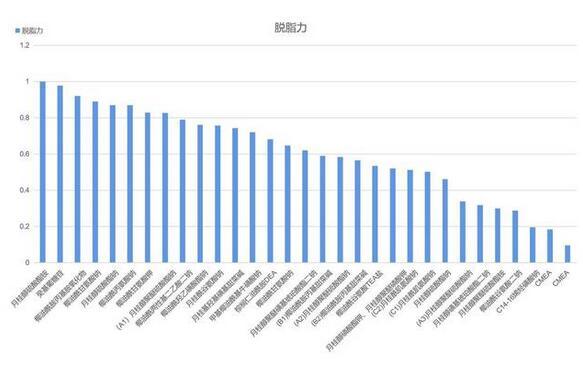 從上述數(shù)據(jù)中可以看出,在規(guī)定條件下,脫脂力最強(qiáng)的是月桂醇硫酸酯銨,脫脂力最弱的是兩款CMEA;