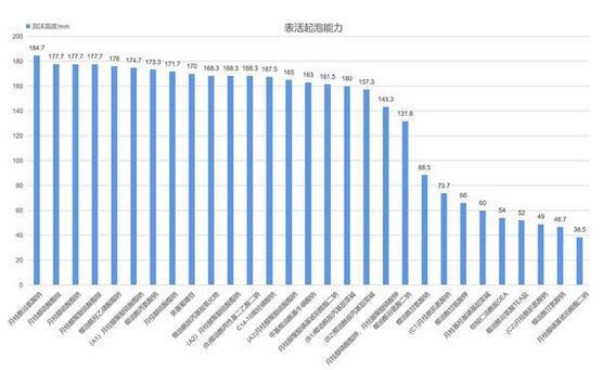 通過對比和排序,我們很快就能篩選出起泡能力好的表活劑,同時(shí)也能得到表活劑的起泡規(guī)律:(ps:由于相同原料出于不同廠商,其泡沫性能也存在差異,此處用不同大寫字母代表不同的原料廠商)