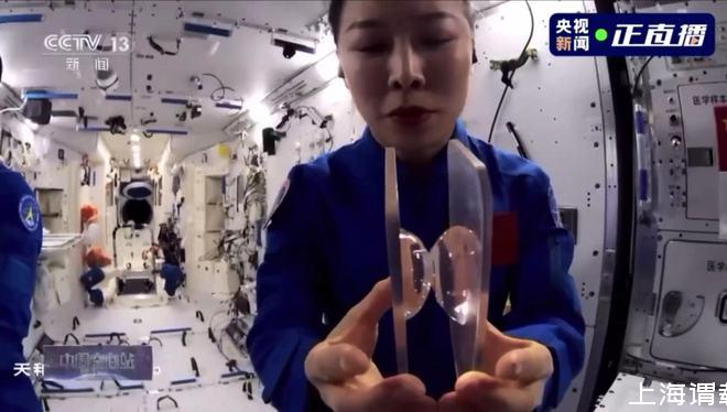 首先,王亞平拿出了兩塊透明的液橋板。
