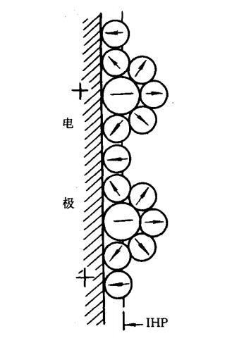 我們知道在溶液中電極表面是吸附了一層極性水分子的。就是緊密層第一層定向排列的水分子偶極層。所謂的表面活性物質(zhì)只有脫去其外部的水化膜,并且擠掉吸附在電極表面的水分子,才有可能與電極表面發(fā)生短程作用而聚集在界面,也就是成為表面活性物質(zhì)。比如在前面說緊密層結(jié)構(gòu)時(shí)候的陰離子。