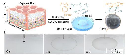 圖1受皮膚分化過(guò)程啟發(fā)的水-水鋪展與聚電解質(zhì)膜制備機(jī)制