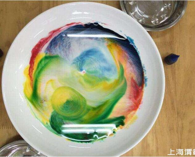 在牛奶表面上放幾滴食用色素。顏色,數(shù)量和布置可以根據(jù)您的喜好選擇。