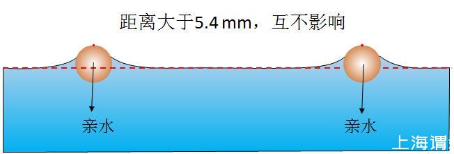 圖2當(dāng)親水球體距離很大時(shí),每個(gè)表面張力的合理都向下,互不影響