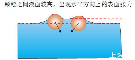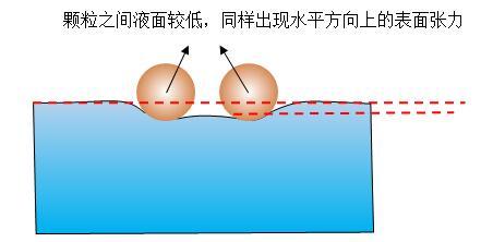 圖7親水疏水顆粒相互使液面變化,打破原來所受表面張力的對(duì)稱性,出現(xiàn)相互排斥的表面張力