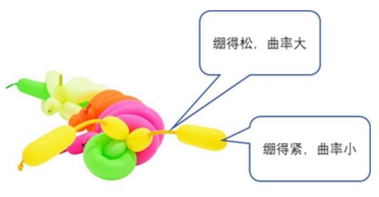 很顯然,一個決定因素就是張力的大?。浩つた嚨脑骄o,所能產(chǎn)生的壓力差就越大。但是還有另一個很重要的因素,就是表面彎曲的程度,也就是它的曲率。我們還是用氣球做一個說明,例如下面這個氣球: