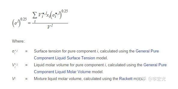 液體的表面張力系數(shù),是液體本身的一種性質(zhì),主要由液體本身決定。純物質(zhì)液體表面張力可用Macleod-Sugden 法 、Sastri-Rao 法、Brock-Bird 法或Pitzer 法估計[1]。純物質(zhì)液體表面張力可用擴展的Macleod-Sugden 法估計[2]: