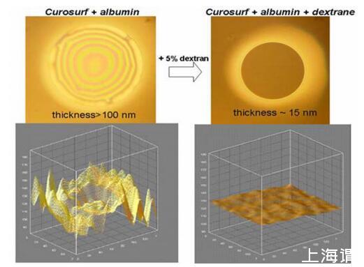 白蛋白抑制外源表面活性劑制劑在空氣/水界面的表面活性。當BSA出現(xiàn)在膜液相中時,Curosurf和Survanta都失去了在單層中保持低最小表面張力和形成黑色泡沫膜的能力。