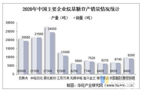 2020年中國主要企業(yè)烷基糖苷產(chǎn)銷量情況統(tǒng)計