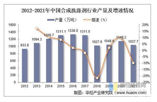 2012-2021年中國合成洗滌劑行業(yè)產(chǎn)量及增速情況