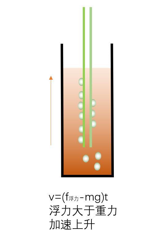 第一階段:氣泡的浮力加上吸管的浮力大于吸管的重力,吸管加速上升階段。如下圖所示
