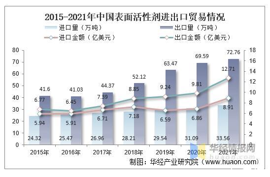 2015-2021年中國表面活性劑進出口貿(mào)易情況
