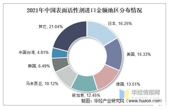 2021年中國表面活性劑進口金額地區(qū)分布情況