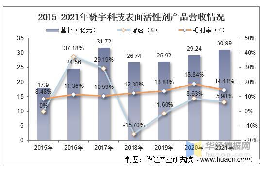 贊宇科技集團股份有限公司是專業(yè)從事表面活性劑、油脂化學(xué)品研發(fā)制造和洗化產(chǎn)品代加工的高新技術(shù)企業(yè)。長期以來,公司憑借先進的理念、科學(xué)的管理以及技術(shù)和人才的優(yōu)勢,堅持自主創(chuàng)新,走科技成果產(chǎn)業(yè)化的發(fā)展道路,現(xiàn)已成為國內(nèi)研究和生產(chǎn)表面活性劑的龍頭企業(yè)之一。據(jù)資料顯示,2021年公司表面活性劑產(chǎn)品營收為30.99億元,同比增長5.98%,毛利率為14.41%。