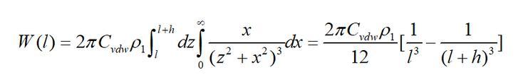 始終ρ1為無限大平板物體單位體積的分子數(shù)(分子密度);h為平板的厚度;l為單個分子到平板的最近距離。