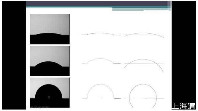 平板固體和液體的話有照相法,直接把液滴照片拍下來,軟件分析。又分為躺滴法和懸滴法。