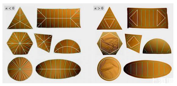 在這項研究中,團(tuán)隊把重點放在具有正曲率和負(fù)曲率的彎曲外殼,重點分析材料的物理形狀和曲率對褶皺的模式可能產(chǎn)生多大的影響。