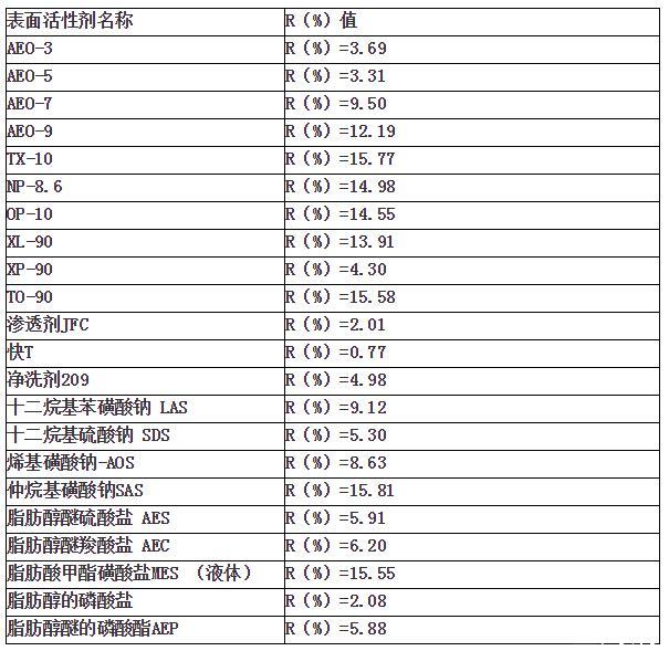 R值越大,表明凈洗能力越強,該測試標準可用來表征表面活性劑對一般污垢的去除,不適用于反映油脂和蠟質(zhì)的去除能力。