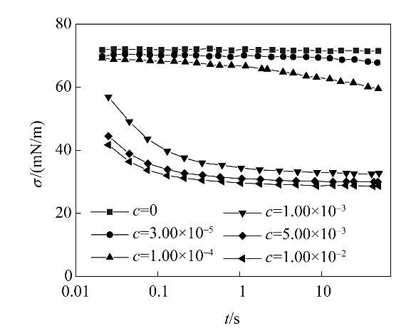 圖3不同濃度表面活性劑溶液的動(dòng)態(tài)表面張力Fig.3Dynamic surface tension at various surfactant concentrations