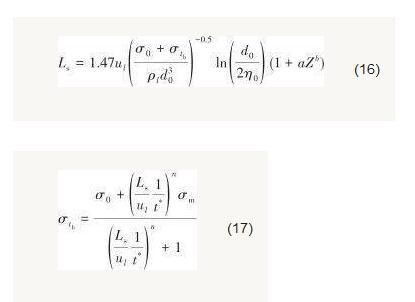 式中,η和η0分別為射流表面波動(dòng)振幅和初始振幅,m。假設(shè)表面波振幅發(fā)展至射流半徑時(shí),射流發(fā)生破裂。因此,射流破裂長(zhǎng)度可以表示為[9]: