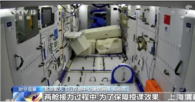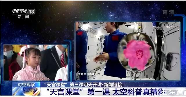 在約45分鐘的授課中,航天員演示了微重力環(huán)境下太空“冰雪”實驗、液橋演示實驗、水油分離實驗、太空拋物實驗,講解了實驗現(xiàn)象背后的科學原理,還展示了部分空間科學設施。