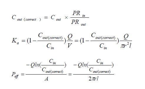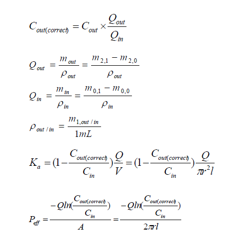 對于易于吸收的藥物,即Peff>0.2×10?4cm/min,灌流時溶液密度的變化對測量結(jié)果影響不大,可以默認(rèn)ρin=ρout=1 g/mL,即校正濃度Cout(Correct)=Cout×mout/min。