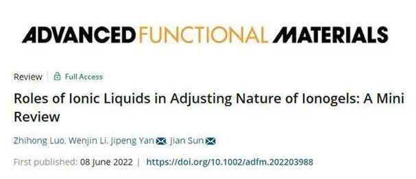 北京理工大學(xué)生命學(xué)院綠色生物制造課題組在國際頂級(jí)期刊《Advanced Functional Materials》(影響因子18.808)發(fā)表題為《Roles of Ionic Liquids in Adjusting Nature of Ionogels:A Mini Review》的綜述,文章綜述了離子液體在調(diào)控離子凝膠的結(jié)構(gòu)和性能方面發(fā)揮的作用。該文章通訊作者為閻繼鵬副教授和孫劍教授,第一作者為北京理工大學(xué)生命學(xué)院2020級(jí)碩士生羅志鴻。