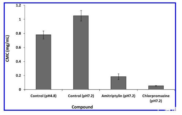 在本報告中,我們描述了一種用于測定CMC的替代方法,因此與langmuir平衡方法相一致,藥物的磷脂生成潛力。我們使用熒光染料探針通過短鏈脂質(zhì)的CMC變化來測量藥物脂質(zhì)復合物的形成。一些熒光染料探針長期以來一直用于測定CMC,28,29包括脂質(zhì)30,31,這是基于影響染料探針熒光發(fā)射的膠束形成后的微環(huán)境變化。所需的儀器是大多數(shù)生物學和生物化學實驗室都有的熒光讀板儀。