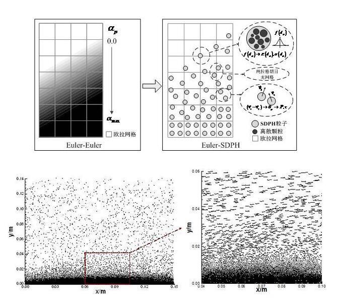為解決現(xiàn)有模型和算法在求解氣-粒兩相流動(dòng)問題遇到的不足,基于顆粒動(dòng)力學(xué)模型,通過增加SPH粒子所表征的顆粒的材料屬性,推導(dǎo)SPH粒子屬性與顆粒屬性間的關(guān)系式,將SPH改造成適于離散相求解的SDPH方法,建立SPH粒子與真實(shí)顆粒間的一一對(duì)應(yīng)關(guān)系;在此基礎(chǔ)上,分別采用SDPH方法和FVM對(duì)TFM模型中的離散相和連續(xù)相進(jìn)行求解,推導(dǎo)SDPH和FVM離散方程組,搭建SDPH與FVM耦合框架,實(shí)現(xiàn)SDPH-FVM耦合算法流程。