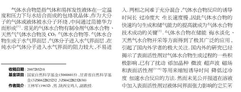 表面活性劑對(duì)氣體水合物界面張力的影響