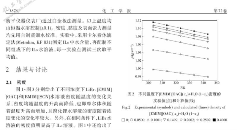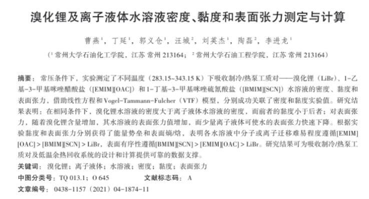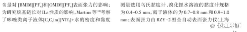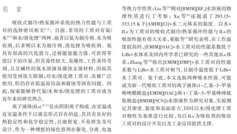 溴化鋰及離子液體水溶液密度、黏度和表面張力測(cè)定與計(jì)算