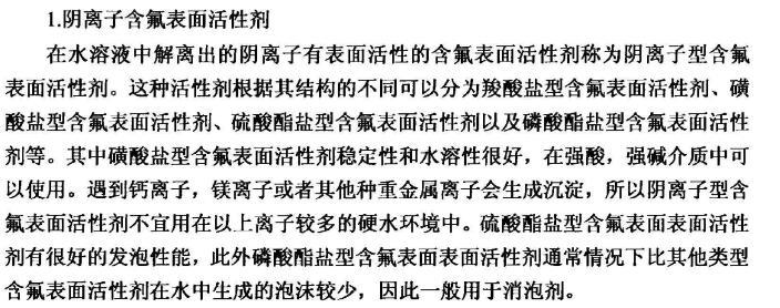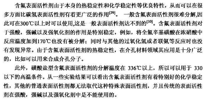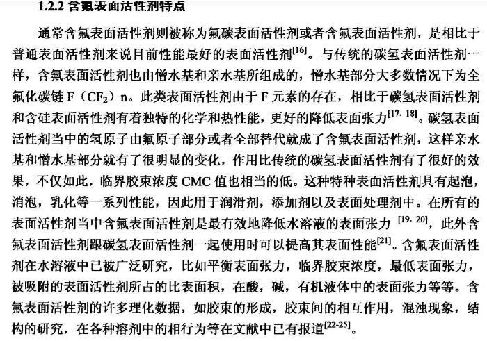 【摘要】:本論文首先對新型含氟表面活性劑的特性,應(yīng)用領(lǐng)域,國內(nèi)外研究進展進行了全面的綜述。含氟表面活性劑是目前最受青睞的特種表面活性劑,相比于傳統(tǒng)的碳?xì)浔砻婊钚詣?,含氟表面活性劑的用量少,降低水溶液表面張力的作用強,同時可以跟其它表面活性劑起到很好的復(fù)配效果,可以應(yīng)用于消防、鉻霧抑制劑、造紙、冶金、起泡與消泡劑的合成等很多領(lǐng)域。