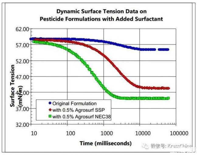 圖2.不同表面活性劑農(nóng)藥的動態(tài)表面