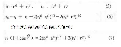 式中:rl、rld、rlp分別為液體表面張力、液體表面張力色散分量和極性分量;rs、rsd、rsp分別為固體表面能、固體表面能色散分量和極性分量;為液體與固體的接觸角。