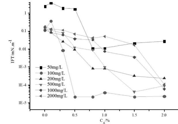 測定了不同CDEA-12濃度下體系最低界面張力隨堿濃度的變化關(guān)系。